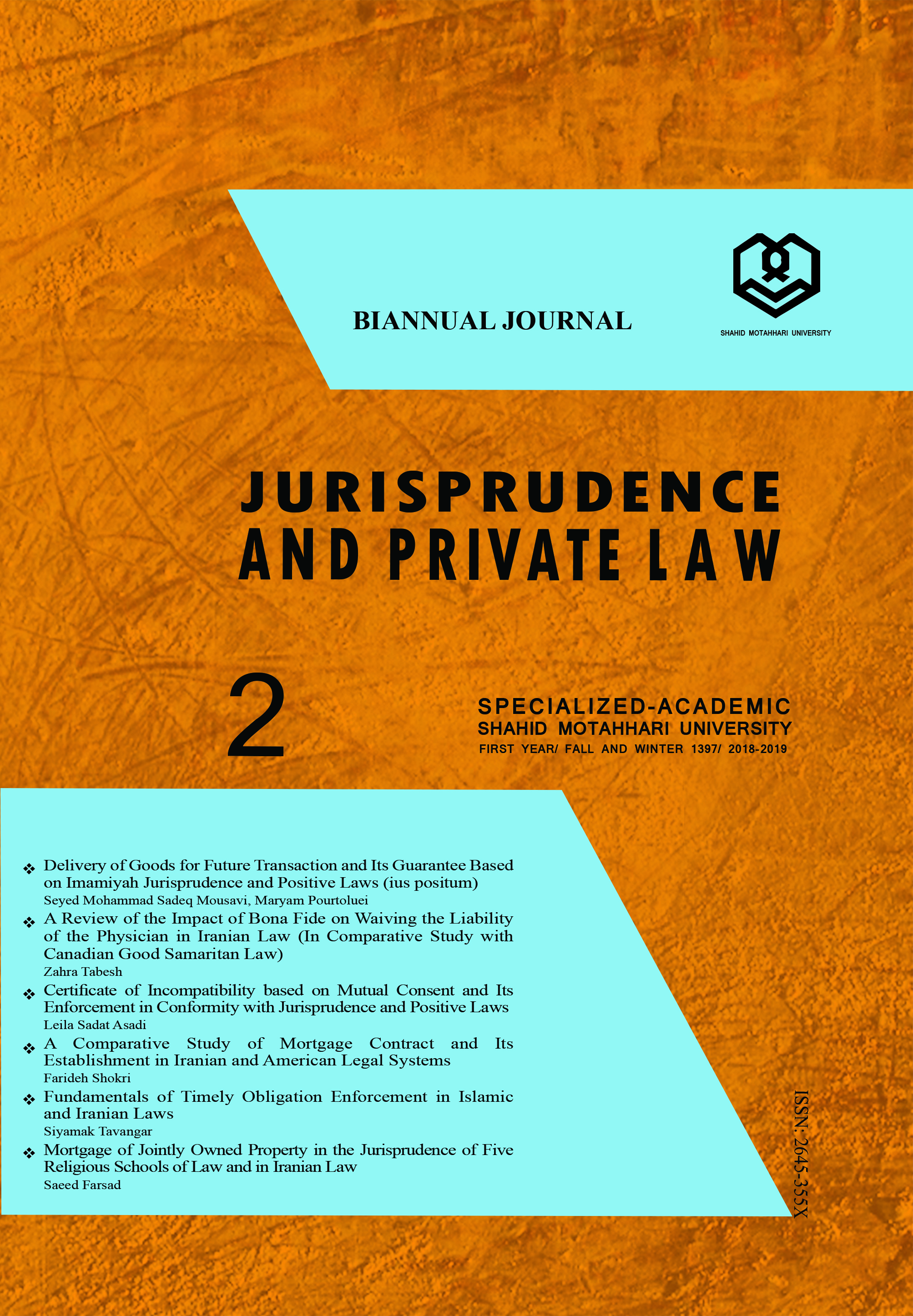 چكيده: رهن مال مشاع از منظر فقه امامیه، مالکی، شافعی و حنبلی (به جز حنفی) از مصادیق قاعدۀ سلطنت بوده و جایز است، چون انشای عقد رهن با تصرف در مال شریک ملازمه ندارد. بدیهی است تسلیم و اقباض مال مشاع به مرتهن در مواردی که مستلزم تصرف در سهم مشاع شریکان دیگر باشد، نیازمند اذن آنان است و در صورتی که راهن بدون اذن شریک، مال مشاع را به مرتهن تسلیم نماید، ضامن است؛ ولی در جایی که تسلیم مال مشاع با تخلیه همراه باشد، تسلیم مال مستلزم تصرف در مال شریک یا شریکان دیگر نبوده و از نظر فقه مذاهب، اذن شریک یا شریکان در تخلیه لازم نیست. تحقیق حاضر به بررسی این مسائل در فقه مذاهب خمسه و حقوق ایران میپردازد.