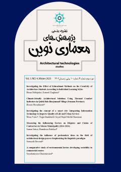 34- مجاهد، وحیده؛ قبادیان، وحید؛ و تیز قلم زنوزی، سعید(1399). شاخصهای معماری همساز با اقلیم در منطقه گرگان در راستای معماری پایدار. مجله نگرشهای نو در جغرافیای انسانی، 13(1)، 622-635.