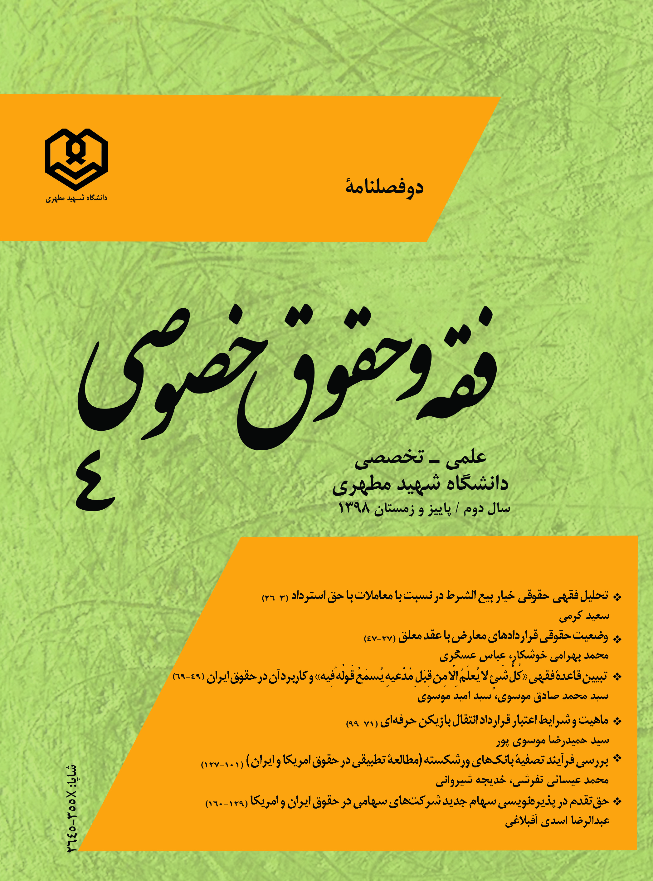 • بررسی فرآیند تصفیۀ بانک¬های ورشکسته (مطالعۀ تطبیقی در حقوق امریکا و ایران)